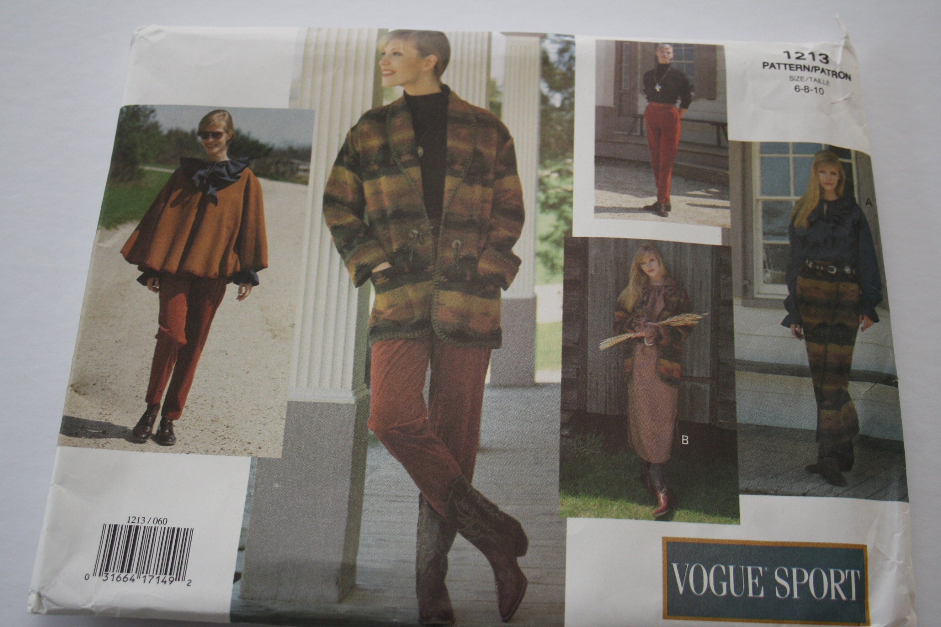 Vogue 1213 Sewing Pattern Jacket Poncho Dress Top Wrap Skirt Pants Size.